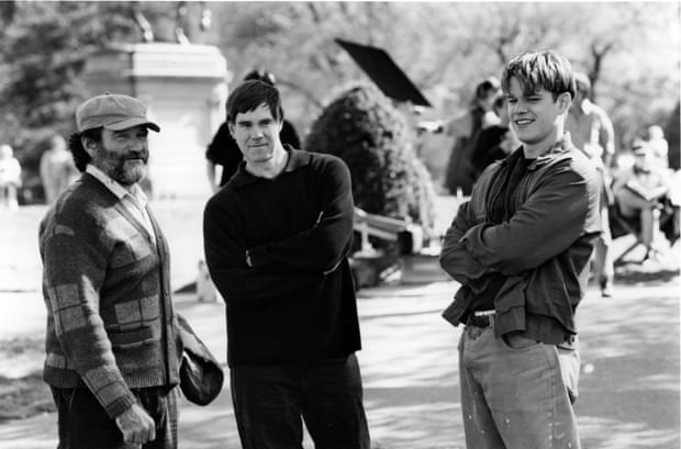 No set de Good Will Looking com Gus Van Sant e Matt Damon. {Photograph}: Landmark Media / Alamy Inventory Picture